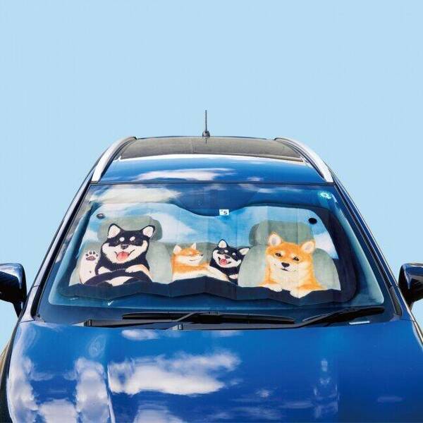 ドライブ気分の柴犬一家 かわいいイラストのサンシェード 年6月8日 エキサイトニュース